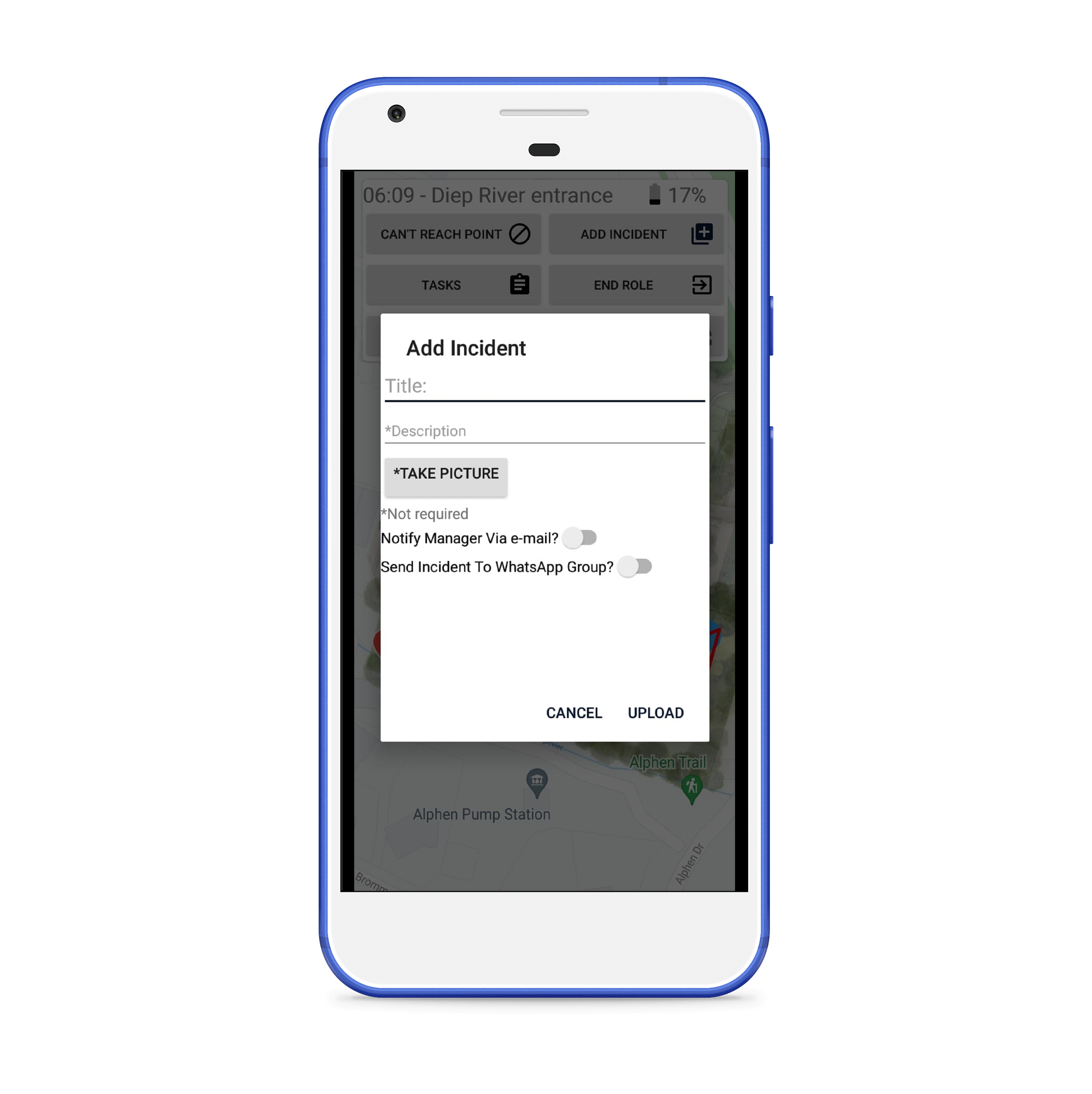 Harness the power of an existing ecosystem and remove temptation for abuse by integrating WhatsApp with time-in-app reporting. Just one click to send incident reports over WhatsApp.